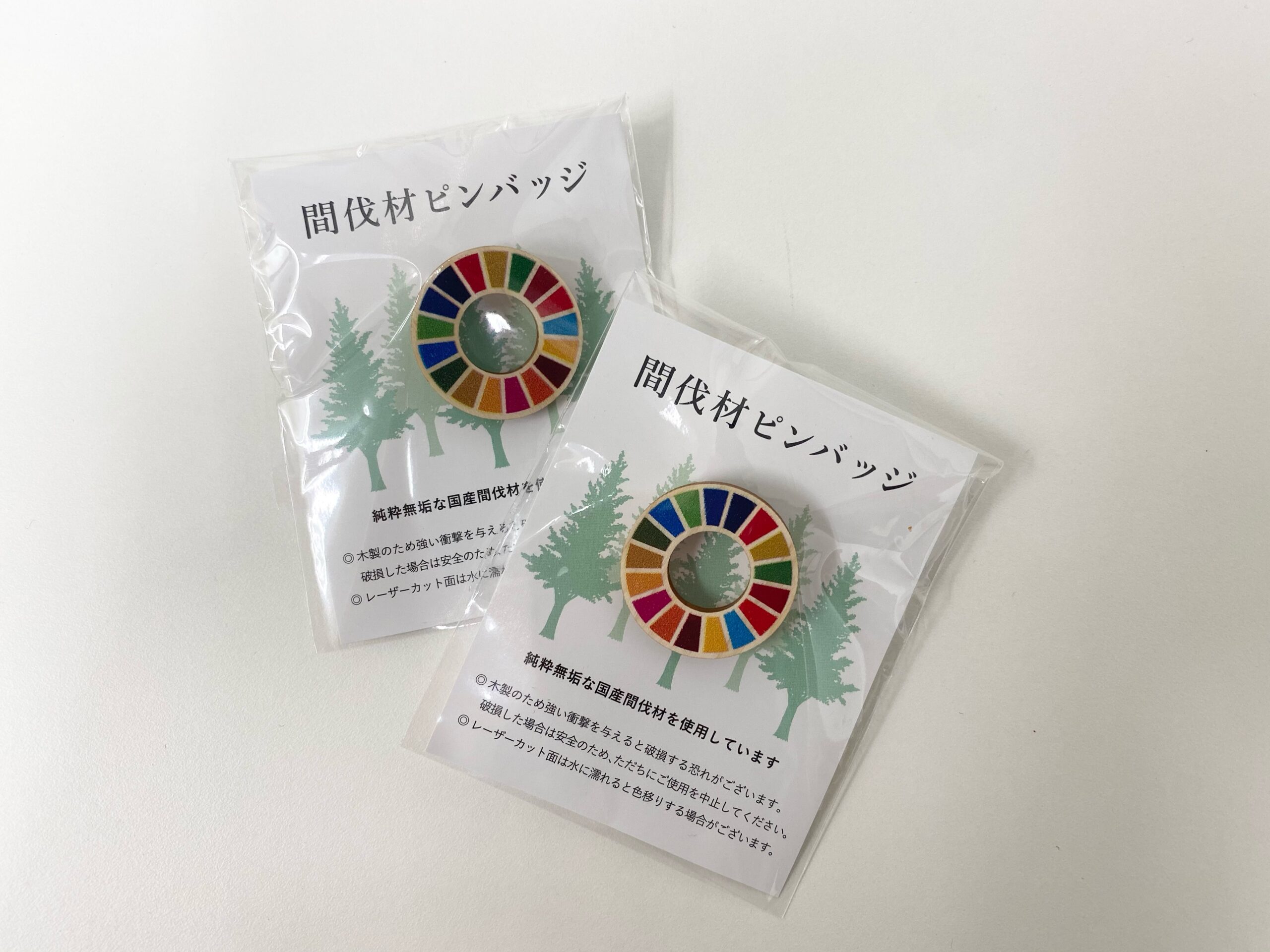 ▼今回使用した国産間伐材ピンバッチがコチラ